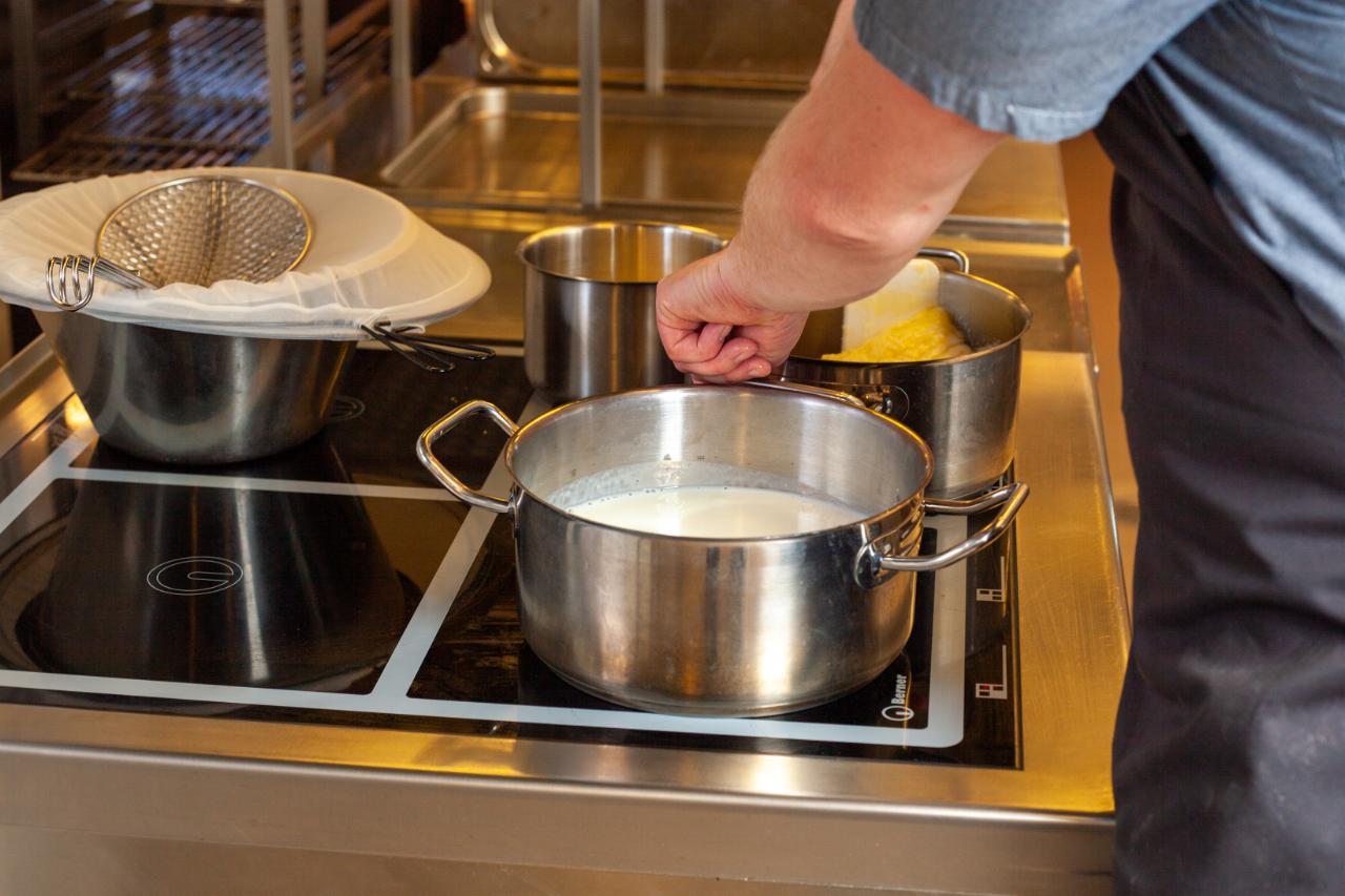 Brug ost som smagsgiver i en sauce og tilfør grøntsagsretten umami, dybde og intensitet. Riv en fast ost (fx Vesterhavsost, Fuldmåneost eller Ravost) og lad den trække i grundsaucen. Sigt fra, reducér og montér med smør.