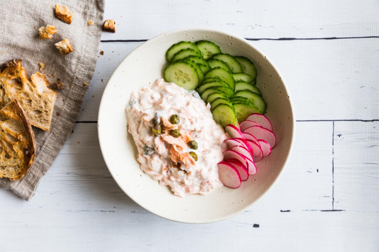 Frisk laksepaté rørt på røget laks, kvark og lime