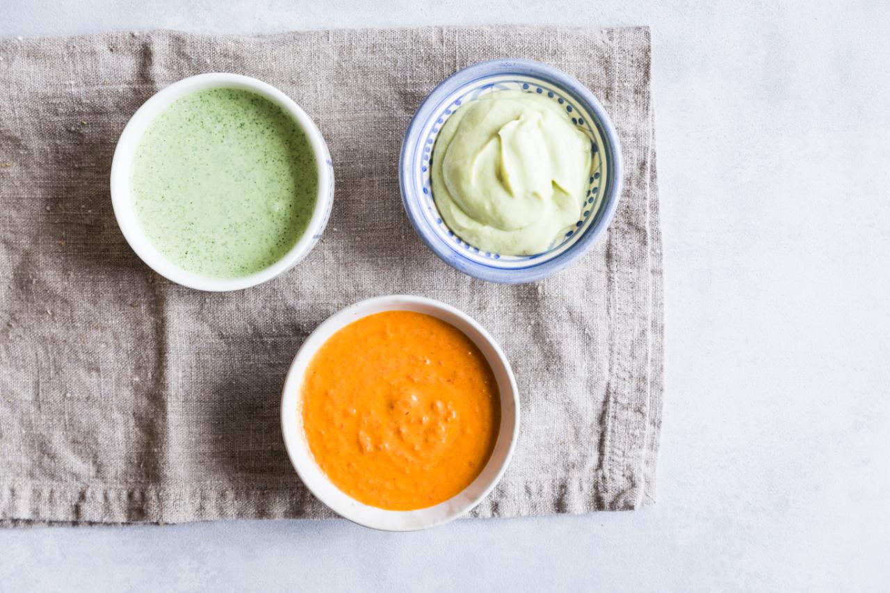 Tre yoghurtdips: Urter, avokado og peberfrugt